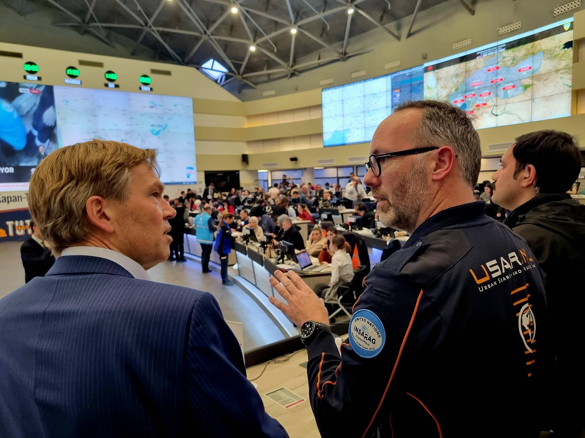 De ambassadeur vond het indrukwekkend om te zien hoe vanuit het AFAD-centrum in Ankara alle inzet in de getroffen gebieden wordt gecoördineerd. 150.000 hulpverleners en alle betrokken ministeries, organisaties en overheidsinstanties die iets met het bestrijden van de ramp te maken hebben, zijn onder één dak aan het werk.