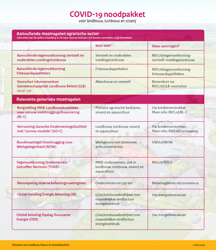Noodpakket COVID-19 voor landbouw, tuinbouw en visserij (PDF | 1 pagina | 3,8 MB)
