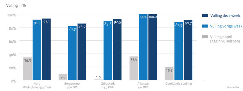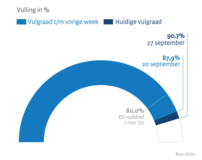 Het doel van 80% voor de vulling van de gasopslagen is gehaald.