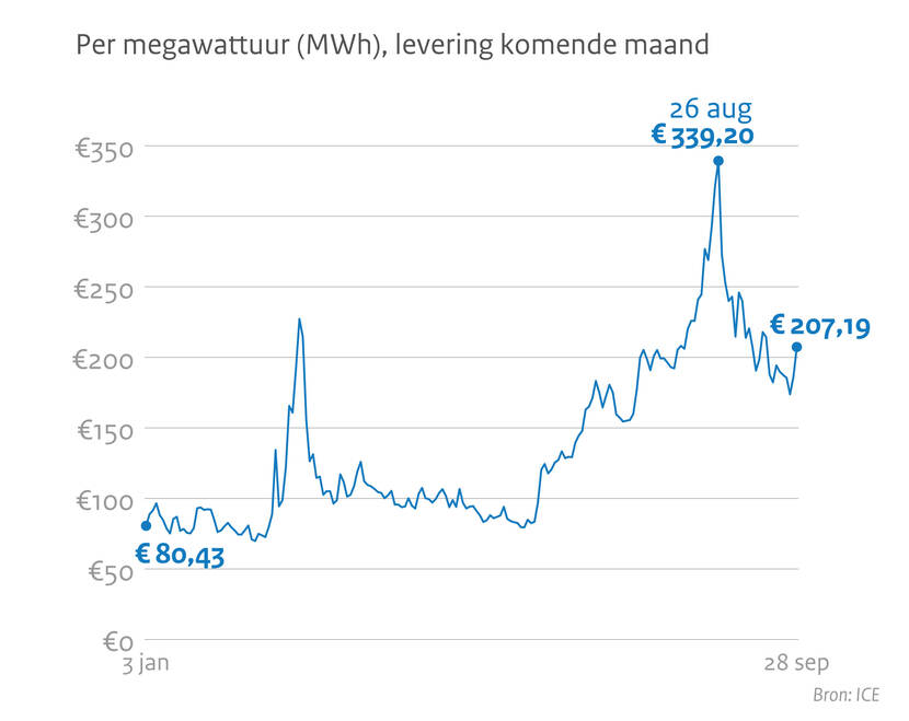 De gasprijs fluctueert sterk, maar is nog steeds erg hoog.
