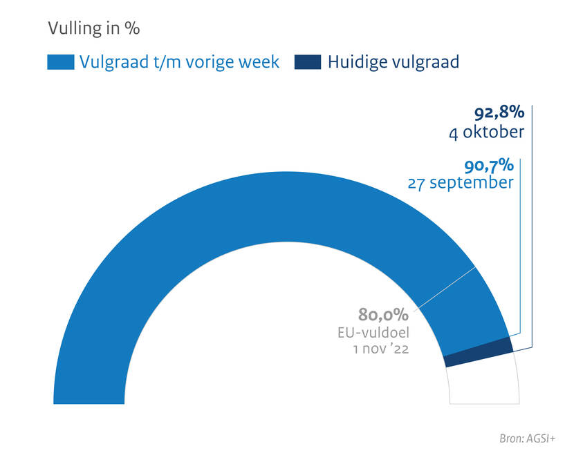Het doel van 80% voor de vulling van de gasopslagen is gehaald.