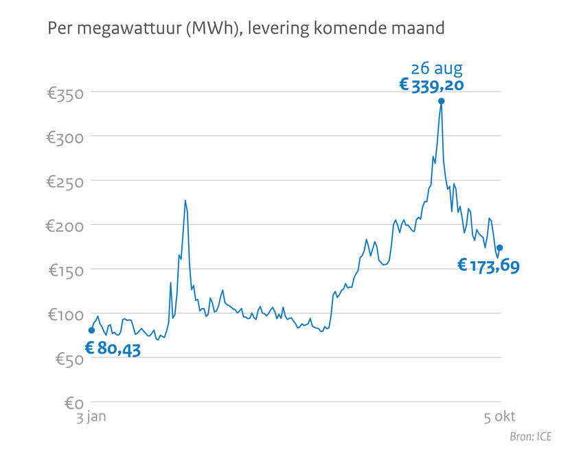 De gasprijs fluctueert sterk; de trend is dalend, maar de prijs is nog steeds erg hoog.
