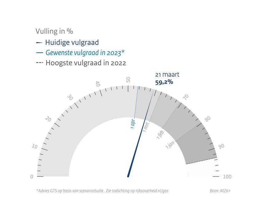 In de wintermaanden wordt de vulgraad lager door gebruik van gas uit de opslagen.