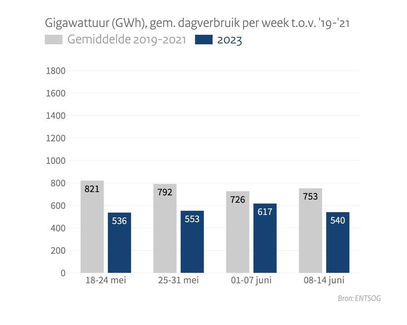 Het gasverbruik is over het algemeen flink lager dan vorige jaren (2019-2021: de jaren voor de gascrisis).