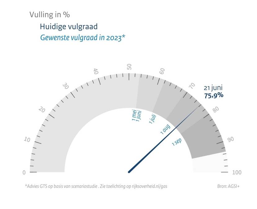 Het kabinet houdt de situatie op de gasmarkt nauwlettend in de gaten. U leest hier actuele cijfers over de zekerheid van de gaslevering. Dit is de update van 23 juni 2023. Gedetailleerde gegevens over de Leveringszekerheid Gas zijn te vinden op de site van Gasunie Transport Services .