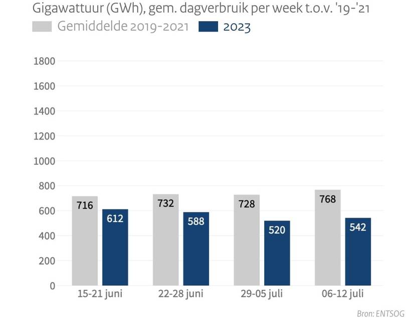 Het gasverbruik is over het algemeen flink lager dan vorige jaren (2019-2021: de jaren voor de gascrisis).
