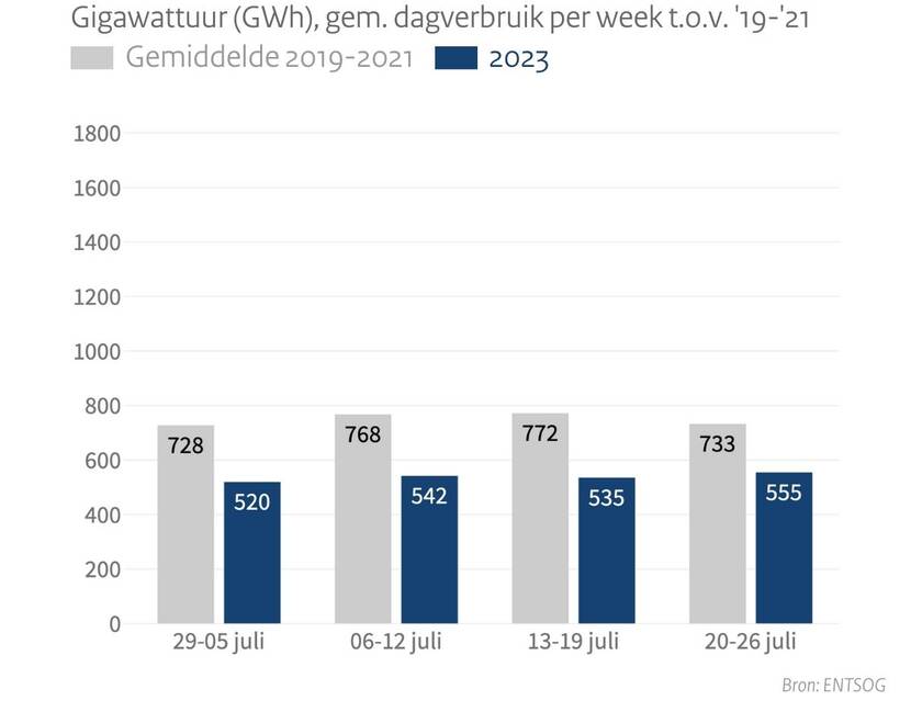 Het gasverbruik is over het algemeen flink lager dan vorige jaren(2019-2021: de jaren voor de gascrisis).