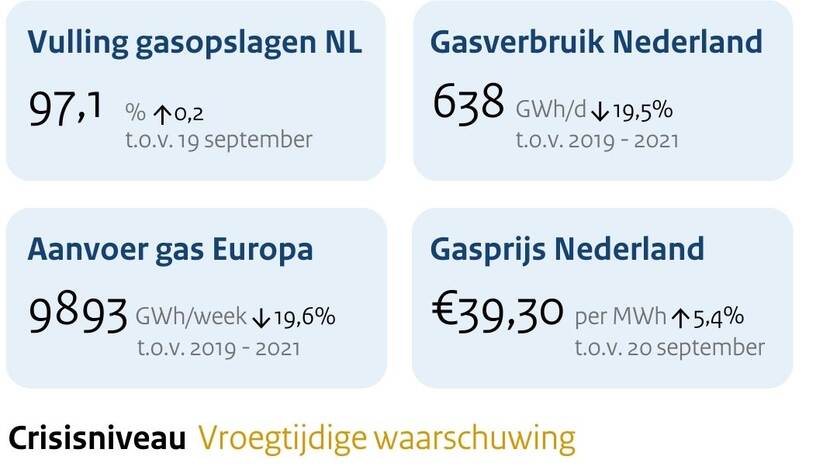 Crisisniveau Vroegtijdige waarschuwing: De overheid ontvangt vanuit de gassector dagelijks gedetailleerde informatie over gasleveringen.
