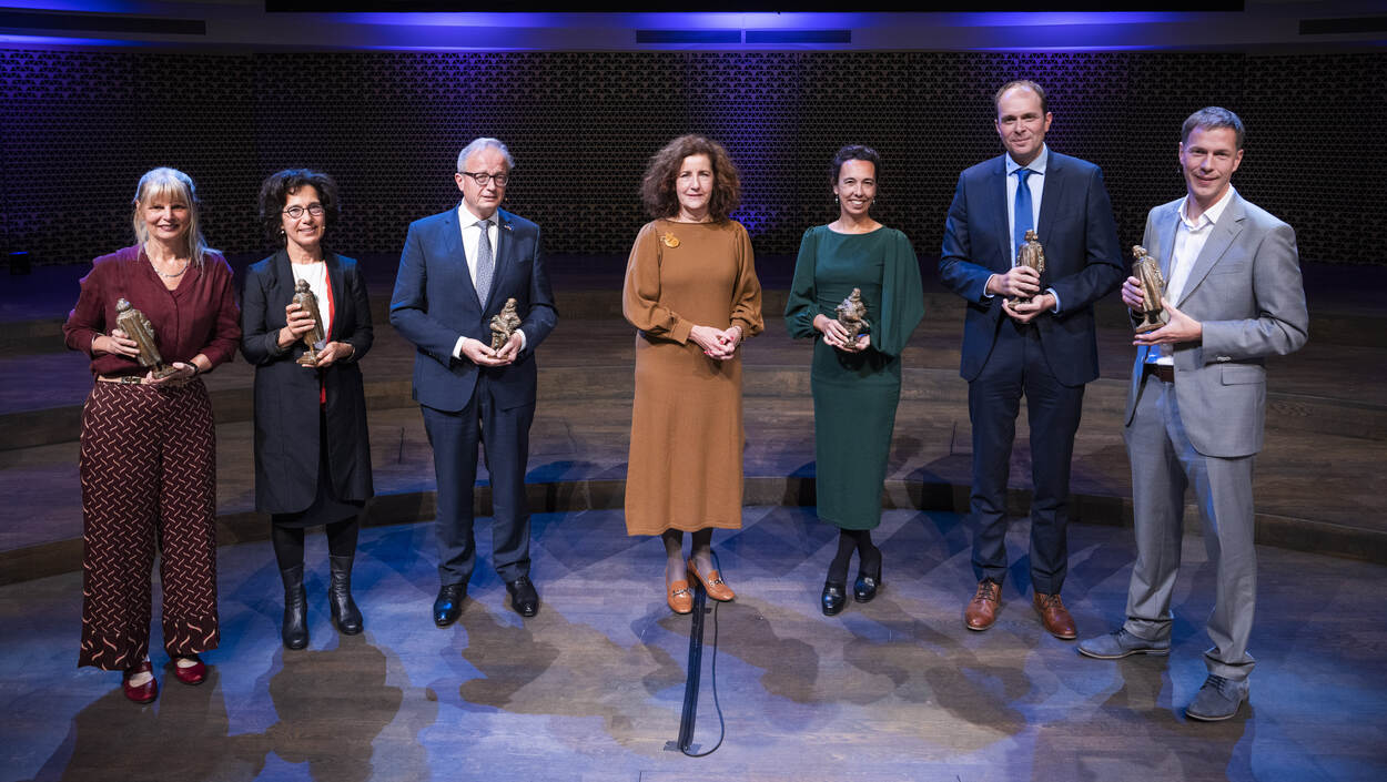 Het is mij dan ook een grote eer om vandaag aan jullie, José, Lieven, Maria en Marc, de Spinozapremie 2021 uit te reiken…en aan jullie, Judi en Bart, de Stevinpremie 2021.
