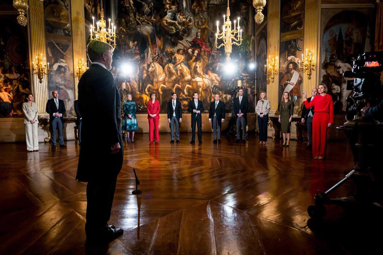 De beëdiging ten overstaan van de Koning vormt de officiële start van het kabinet-Jetten.