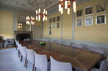 De Thorbeckezaal op de begane grond van het Torentje is nu de vergaderruimte van de minister-president. In deze zaal ontvangt hij collega-ministers en andere (kleine) delegaties voor overleg.