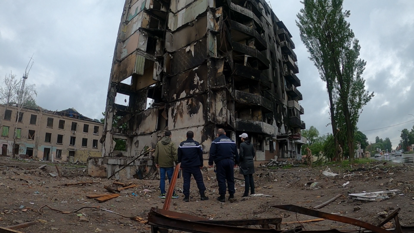The remnants of a shelled house, in the middle of a residential area of Borodyanka. Nearby, 6 makeshift graves were found.