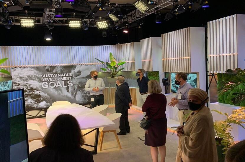 Robert en zijn team voelen zich gesteund, omdat zij nauw samenwerken met het stafbureau van de Secretaris-Generaal.. Een grote uitdaging in de voorbereiding was dat een containerschip met materiaal voor de studio, door de nasleep van orkaan Ida op de Atlantische Oceaan, vertraging opliep. ‘Het schip kon pas een week later dan gepland worden gelost. We hebben toen extra mankracht ingezet om tijd in te halen. Dat was een spannend moment, maar gelukkig is het goed gekomen.’