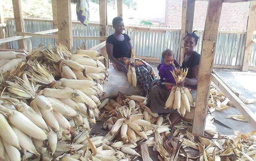 In Rwanda werkt DSM samen met kleinschalige boerenbedrijven, die zich nog niet hebben georganiseerd. Florentine: ‘De boeren waren het gewend om de maiskorrels van de kolf te halen en ze vervolgens te drogen. Door de hoge luchtvochtigheid ging een groot deel van de oogst verloren: voordat de korrels droog waren, waren ze al beschimmeld.’ De samenwerkingspartners stelden voor dat de boeren zich gingen organiseren en hele maiskolven gingen drogen en verkopen.