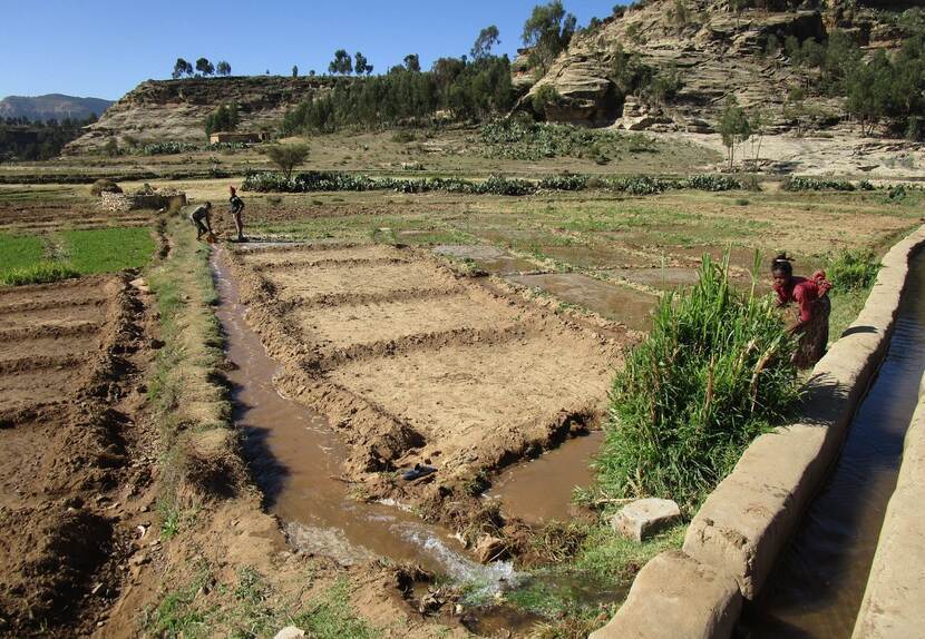 Nederlandse bedrijven en kennisinstellingen kunnen boeren wereldwijd helpen om zich aan te passen aan het nieuwe klimaat, bijvoorbeeld door de aanleg van terrassen in Ethiopië.