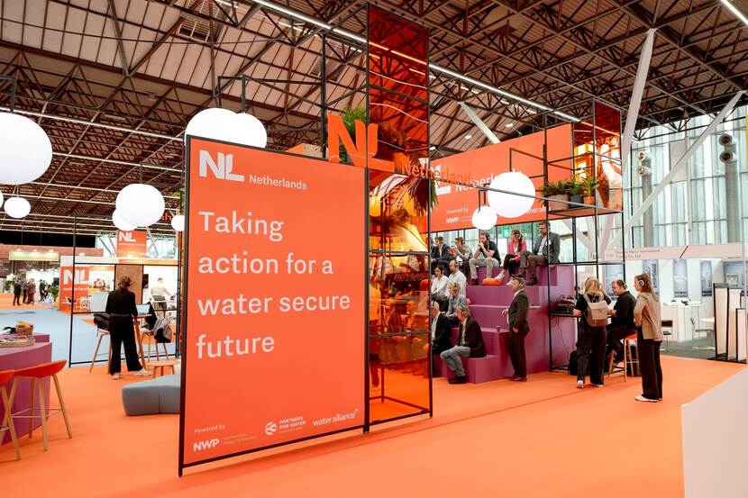 Het ministerie van Buitenlandse Zaken steunt daarom ondernemers met internationale ambities. Dat doet het ministerie samen met uitvoerende partners, zoals de Rijksdienst voor Ondernemend Nederland. In het buitenland staat een groot netwerk van ambassades, consulaten en Netherlands Business Support Offices (NBSO’s) voor ondernemers klaar. Ondernemers kunnen deelnemen aan verschillende handelsmissies over het thema water of gebruik maken van de verschillende subsidies en financieringsmogelijkheden, zoals de Partners voor Water subsidieregeling bijvoorbeeld. Ook kan een bedrijf onder de vlag van Nederland deelnemen aan een vakbeurs, zoals Aquatech Amsterdam. Dat is de grootste vakbeurs ter wereld op het gebied van waterverwerking, drink- en afvalwater. De beurs trok deze week meer dan 20.000 waterprofessionals, waarvan ruim 70% uit het buitenland komt.