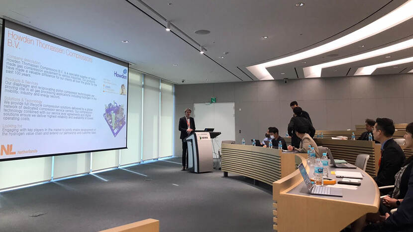 Howden Thomassen Compressors ontwikkelt op maat gemaakte compressoren, waarin waterstof wordt samengeperst. Hierdoor kan waterstof bijvoorbeeld in flessen of bij een waterstoftankstation worden opgeslagen. Daarom neemt Niek deze week deel aan het programma over waterstof. ‘Ik kijk er namens Howden naar uit om samenwerkingsmogelijkheden in Zuid-Korea en Japan te identificeren en op te volgen, voornamelijk op het gebied van waterstof als een onderdeel van een hernieuwbaar en emissievrij energiesysteem.’