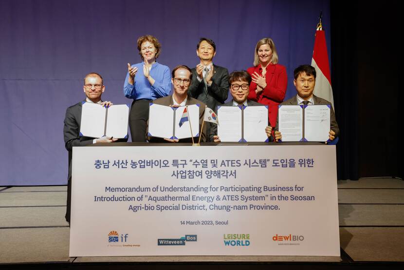 In aanwezigheid van minister Schreinemacher, voorzitter Ingrid Thijssen van VNO-NCW en minister Dukgeun Ahn zijn er zeven intentieverklaringen (MoU’s) ondertekend. Hiermee leggen een aantal Nederlandse en Koreanse partners hun voornemens voor toekomstige samenwerking officiceel vast. ‘Dit is een belangrijk fotomoment voor Koreaanse organisaties en bedrijven’, legt Eva uit. ‘Ook voor de Nederlandse partijen zijn deze intentieverklaringen vaak een belangrijke eerste stap. De steun van de Nederlandse overheid is natuurlijk een goed signaal richting zakenpartners.’