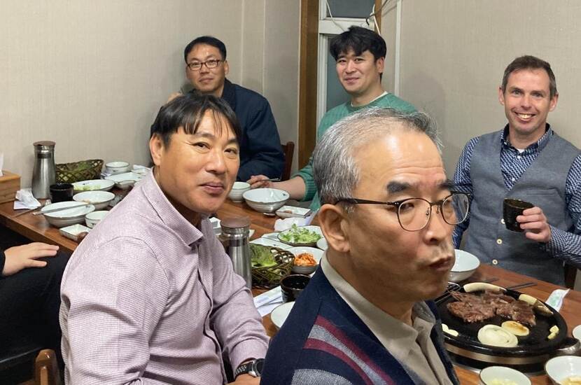 Eenmaal in Daejeon ontmoette hij windturbine leverancier Unison, de grootste turbinebouwer van Korea en Human Composities, een bedrijf dat windturbinebladen bouwt. ‘Eerst heeft iedereen een bedrijfspresentatie gegeven, daarna hebben we vooral over de technische aspecten gesproken. En na de vergadering kreeg ik een uitnodiging om mee te eten, een Koreaans barbecue diner. Dat is meestal wel een goed teken!’