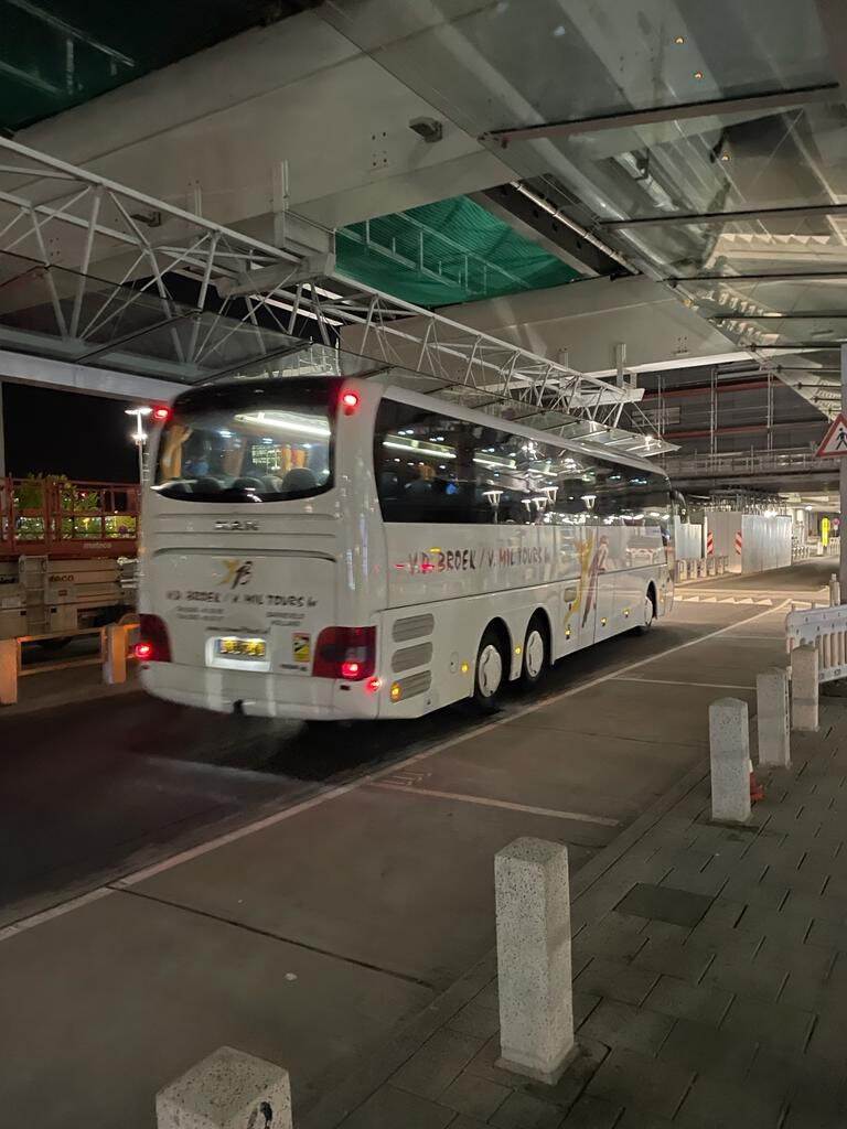 Even later arriveerde ook een bus met 43 evacués in Eindhoven. Deze groep was op dinsdagochtend per vliegtuig aangekomen in Duitsland, waar ze werden opgevangen door de Nederlandse ambassade. Die heeft geregeld dat ze per bus konden doorreizen naar Eindhoven en vergezelde de groep tijdens de busreis.