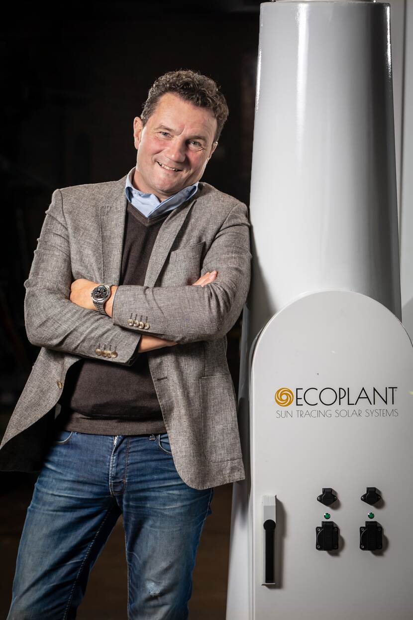 Vaak zijn zonnepanelen een deel van de dag minder effectief, omdat ze niet goed op het zonlicht staan gericht. Zonde, vindt Hans Veenemans. De ondernemer bedacht een oplossing: een vrijstaand ‘energiefabriekje’ dat meedraait met de zon. Met steun van het ministerie van Buitenlandse Zaken bracht hij de Ecoplant al in bijna 30 landen op de markt.