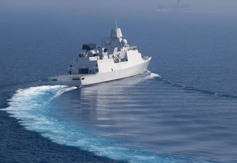 Het marineschip levert een bijdrage aan de veiligheid en vrije doorvaart op zee want de zee is van iedereen. Dit hebben we internationaal afgesproken in het VN-Zeerechtverdrag. Voor Nederland is het belangrijk dat schepen veilig en ongehinderd goederen kunnen vervoeren over zee.