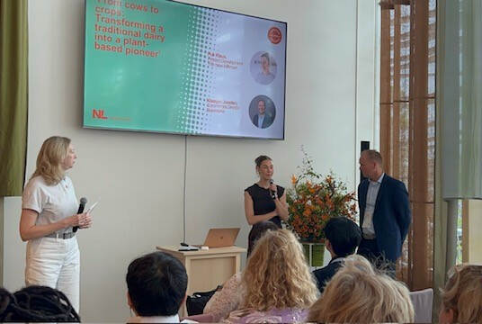 Begin juni ging Puk Klaus, productontwikkelaar bij De Nieuwe Melkboer, mee met de handelsmissie Alternatieve Eiwitten, georganiseerd georganiseerd door Oost NL en de Nederlandse ambassade in Tokio. Het bedrijf produceert plantaardige yoghurt, gemaakt van soja van Nederlandse bodem. Vaak wordt soja uit het buitenland geïmporteerd, maar De Nieuwe Melkboer besloot dat anders te doen, legt Puk uit. ‘We gebruiken alleen Nederlandse soja, die op onze eigen boerderij en bij andere boeren in Nederland wordt verbouwd.’