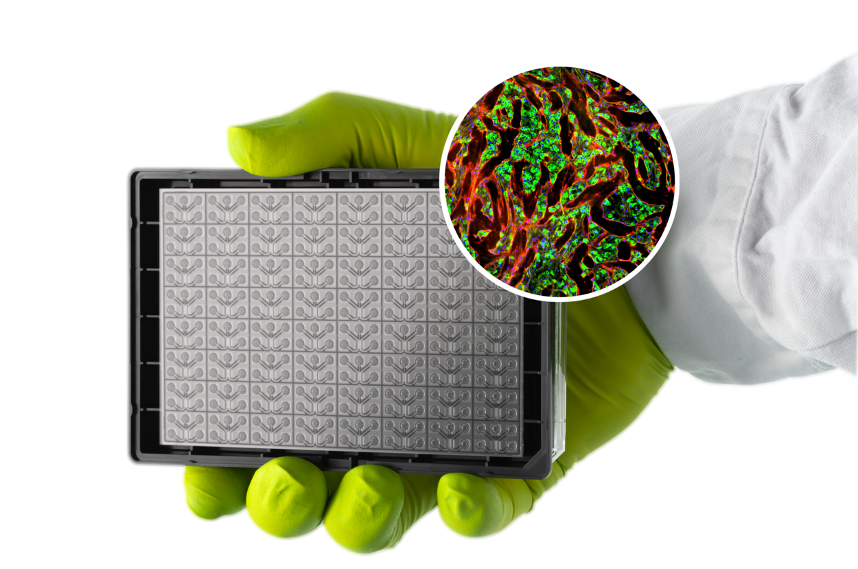 Voor het testen van medicijnen wil je eigenlijk menselijk weefsel nabootsen, en liefst op grote schaal. Daarom ontwikkelde MIMETAS het ‘OrganoPlate platform’. Jos: ‘Dat is een plaat met daarin piepkleine vloeistof kanaaltjes waarin we kleine levende modellen van menselijke organen kweken. We kunnen bijvoorbeeld long- en darmweefsel groeien, en deze zelfs van bloedvaten en ziektes voorzien. Medicijnen kunnen dan op honderden verschillende variaties van de mini-orgaantjes tegelijkertijd getest worden, wat belangrijke inzichten oplevert en medicijnontwikkeling versnelt.’