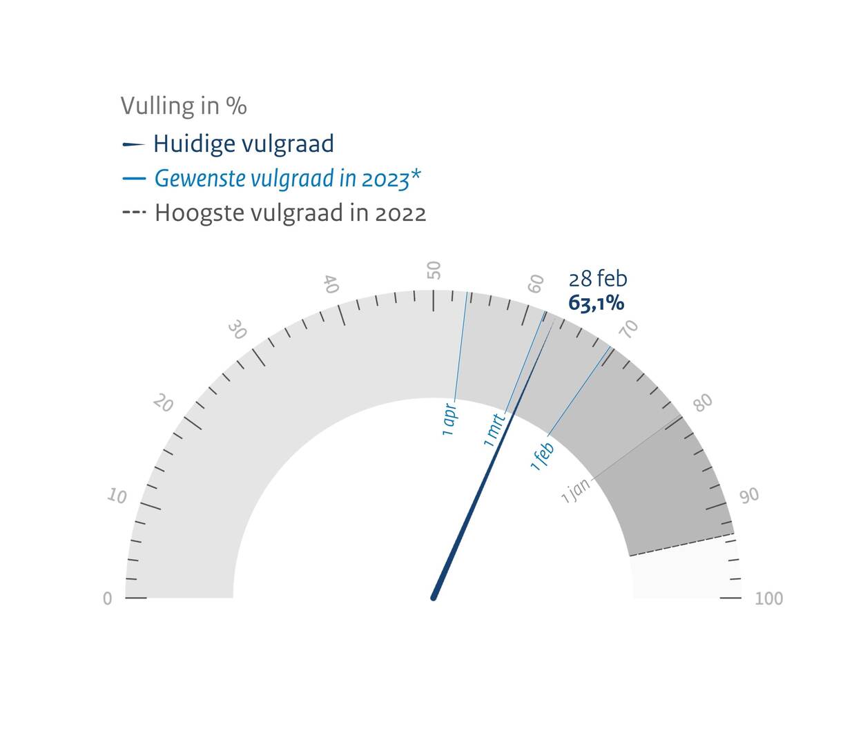 Gewenste vulgraad op 1 maart 2023