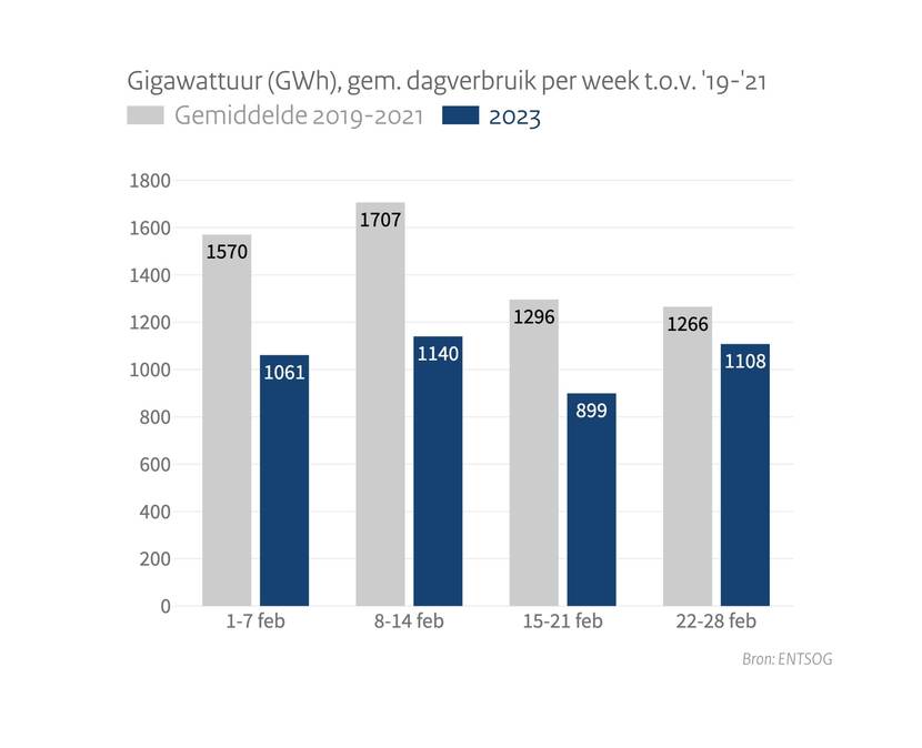 Het gasverbruik is over het algemeen flink lager dan vorige jaren (2019-2021: de jaren voor de gascrisis).