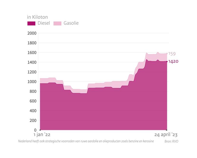 Het kabinet houdt de situatie op de oliemarkt goed in de gaten. U leest hier cijfers over onder andere dieselvoorraden. Dit is de update van 4 mei 2023.