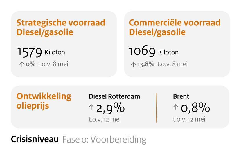 Het kabinet houdt de situatie op de oliemarkt goed in de gaten. U leest hier cijfers over onder andere dieselvoorraden. Dit is de update van 26 mei 2023.