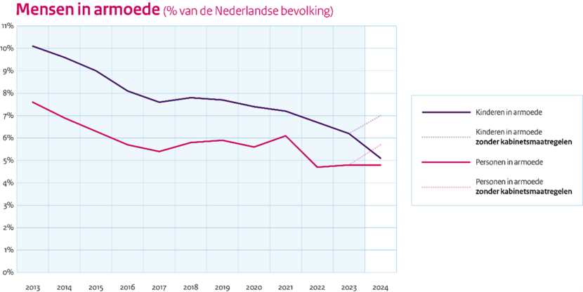 Als gevolg van deze maatregelen stijgt komend jaar voor de meeste mensen de koopkracht. De doorsnee Nederlander gaat er 1,7% op vooruit. Het aantal Nederlanders dat in armoede leeft, blijft komend jaar naar verwachting gelijk op 4,8% van de bevolking, 1,3%-punt lager dan bij de start van het kabinet. Het aantal kinderen dat opgroeit in armoede daalt naar 5,1%. Dat is 2,1%-punt minder dan bij de start van het kabinet.