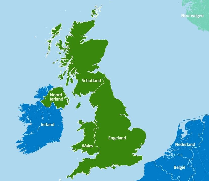 Het Verenigd Koninkrijk (VK) bestaat uit Engeland, Schotland, Wales en Noord-Ierland.