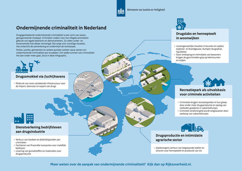 Criminelen die legale bedrijven en diensten gebruiken voor illegale activiteiten, ondermijnen de samenleving. Bijvoorbeeld door panden te huren voor een drugslab. Het kabinet wil Nederland minder aantrekkelijk maken voor ondermijnende criminaliteit.