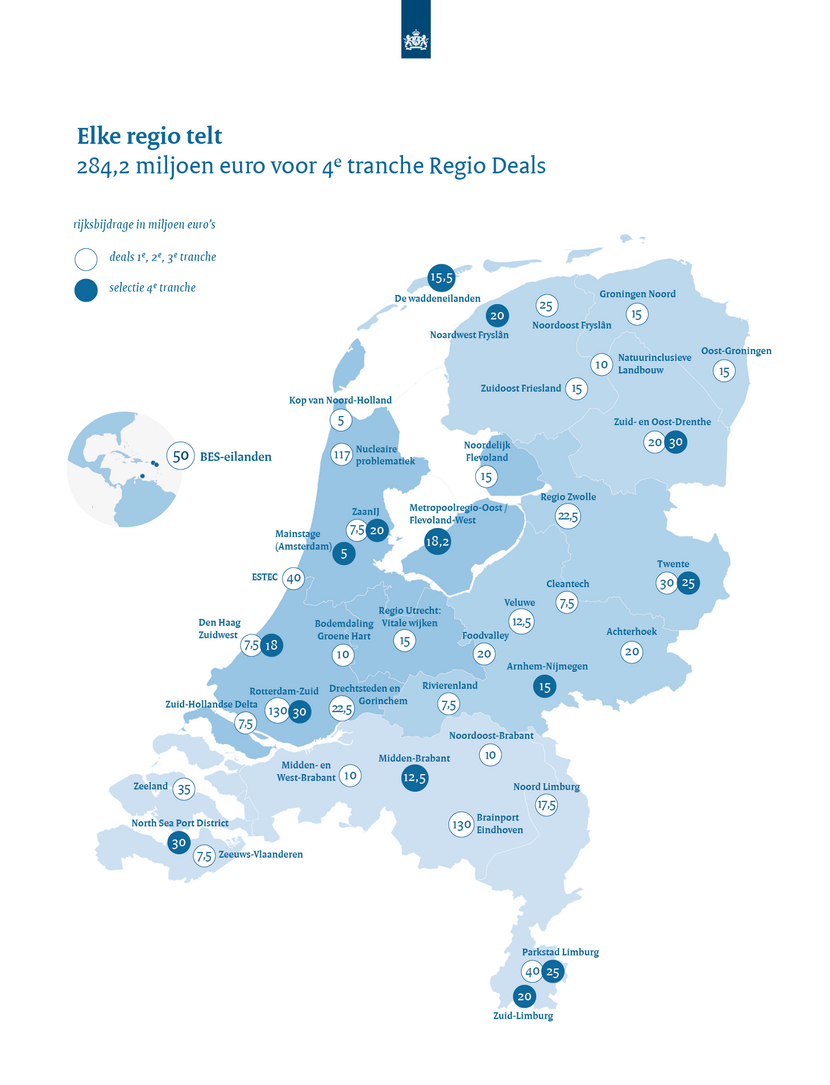 Rijk investeert opnieuw in regio: € 284 miljoen voor 14 nieuwe Regio Deals